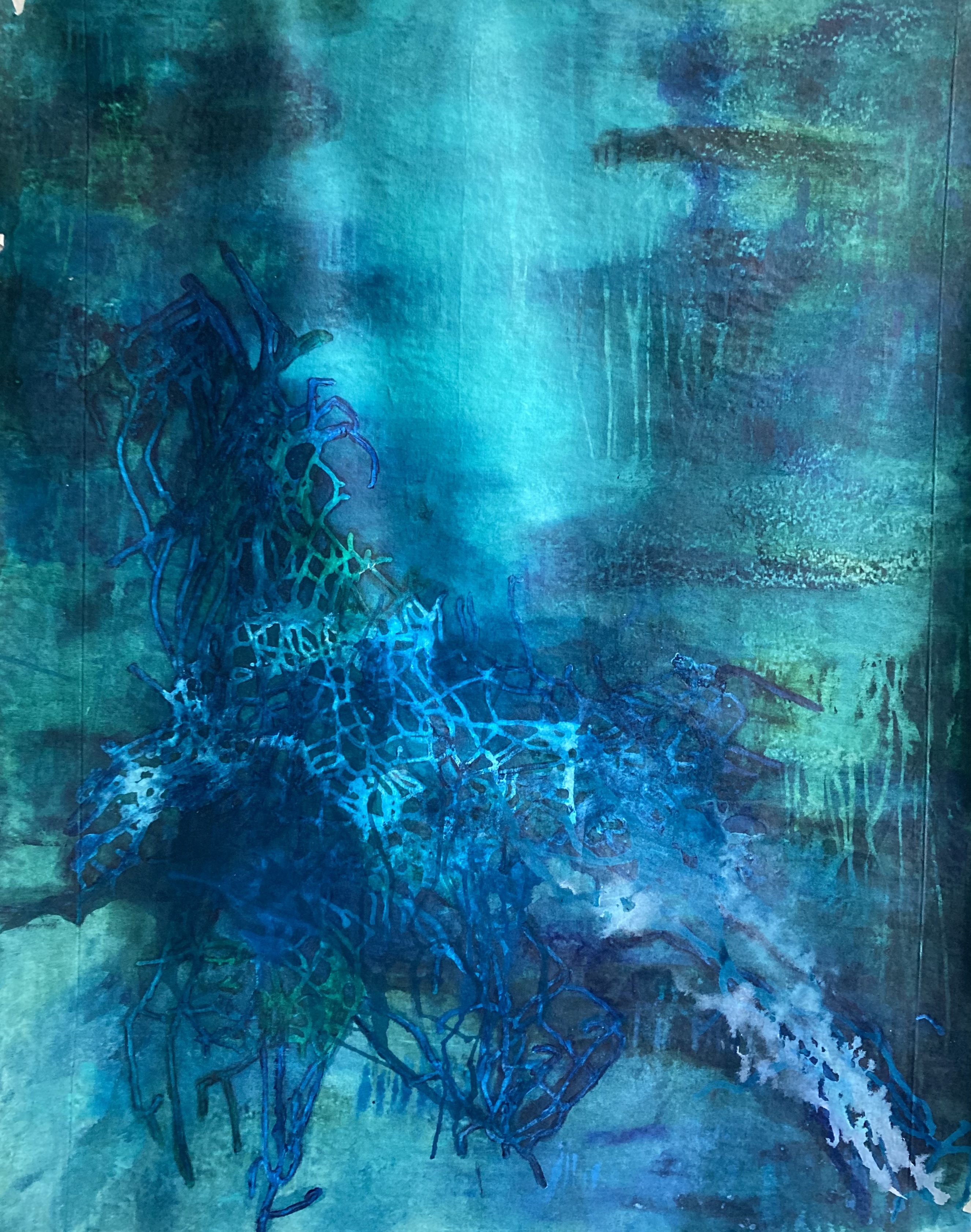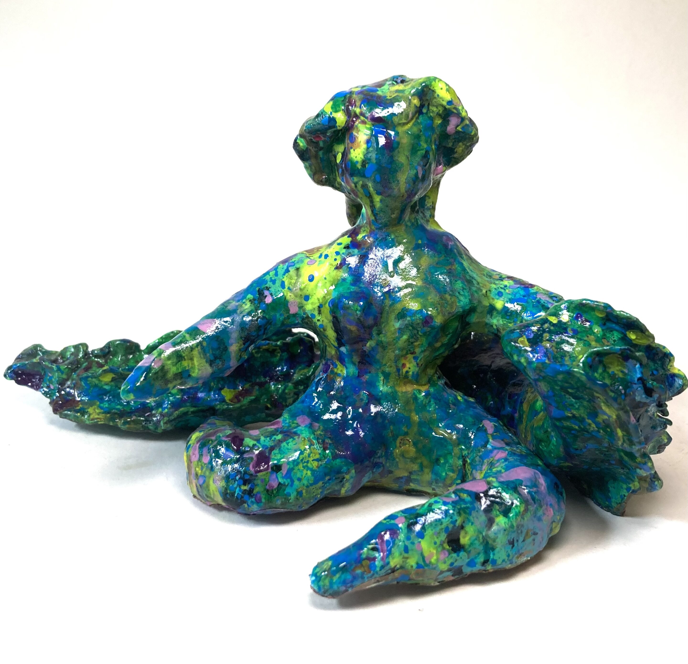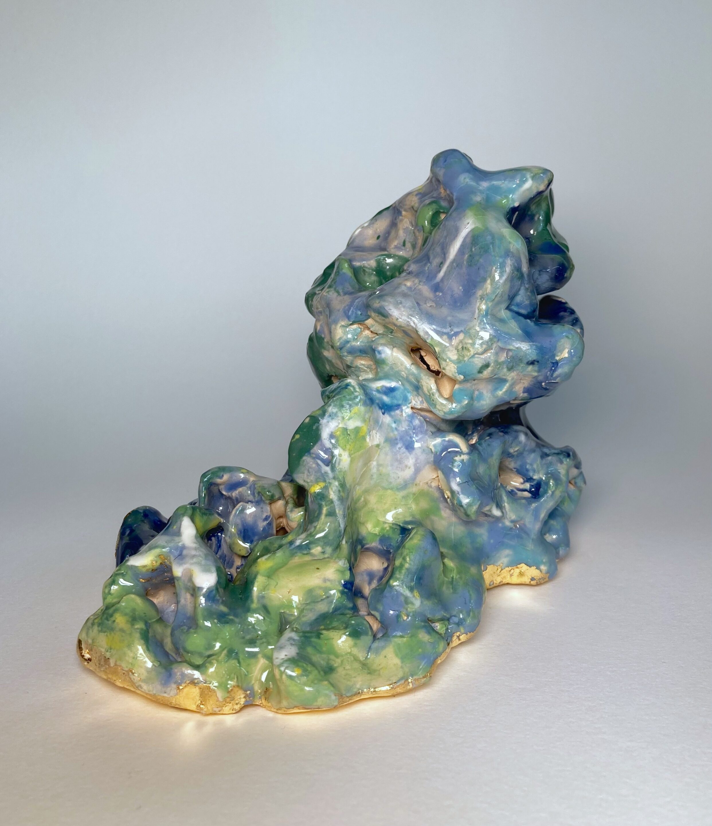 In ihrer aktuellen Serie „Serpent of Eternity“, die während einer Künstlerresidenz im Schwarzwald entstand, untersucht Ganna Ki das Konzept der Schöpfung. Die grüne Landschaft, die Berge und die dichten Wälder inspirierten sie zu kleinen Skulpturen und großen Leinwänden. Der Titel bezieht sich auf den aztekischen Schlangengott Quetzalcoatl (bei den Maya als Kukulkan bekannt), der in der traditionellen Geschichte die Welt erschaffen hat. In dieser Serie erzählt die Künstlerin die Geschichte eines Mädchens, das in einem luziden Traum in eine uralte Ozeanwelt reist. Hier trifft sie die gefiederte Schlange und hört Geschichten von Quetzalcoatl über eine Welt, die noch nicht existiert. Ihre Gemälde und Skulpturen in dieser Serie sind dieser uralten Ozeanwelt gewidmet.