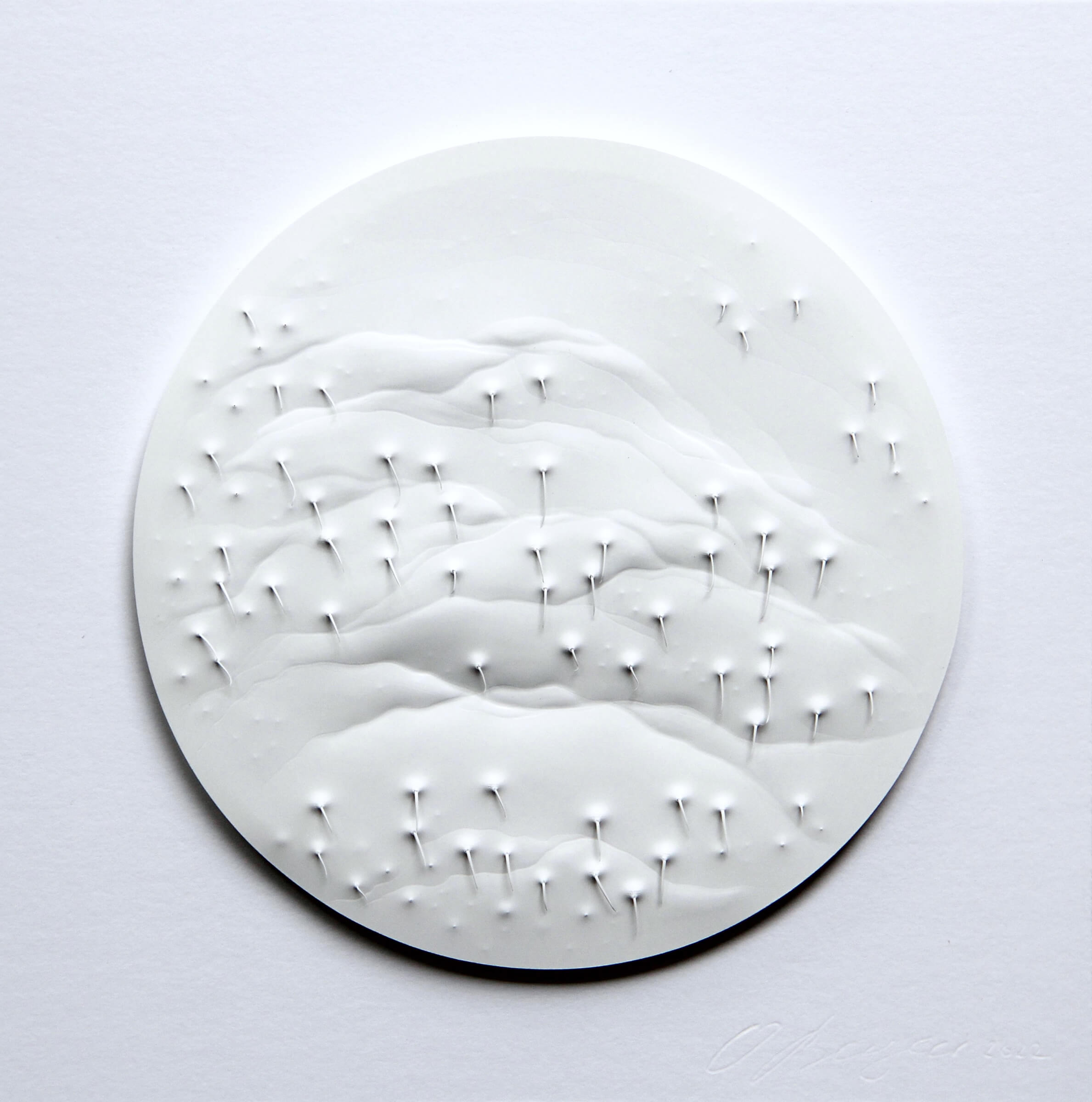Für sie beschreibt das Material nicht nur ein Medium, sondern einen Dialogpartner. Durch Schneiden, Prägen und Wickeln kann sich Papier entfalten und zeigt seine Verletzlichkeit und Widerstandsfähigkeit, was für die Künstlerin als Metapher für die menschliche Psyche steht. Ihre Werke werden in verschiedene Serien zusammengefasst, die nicht nur innovative Techniken, wie der Nasswickeltechnik, zeigen, sondern den Vergleich zwischen Mensch und Papier auf unterschiedliche Weise hervorheben.