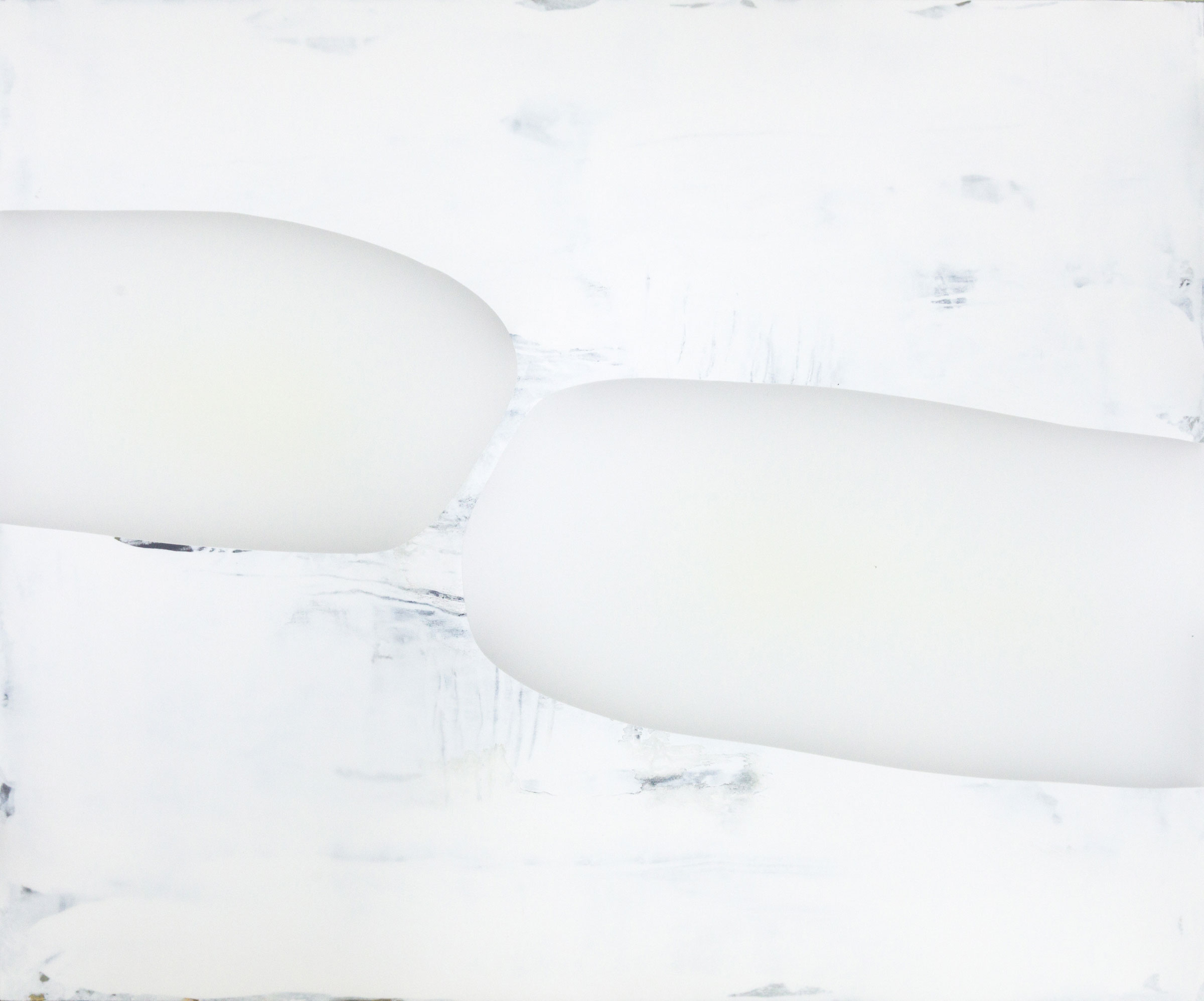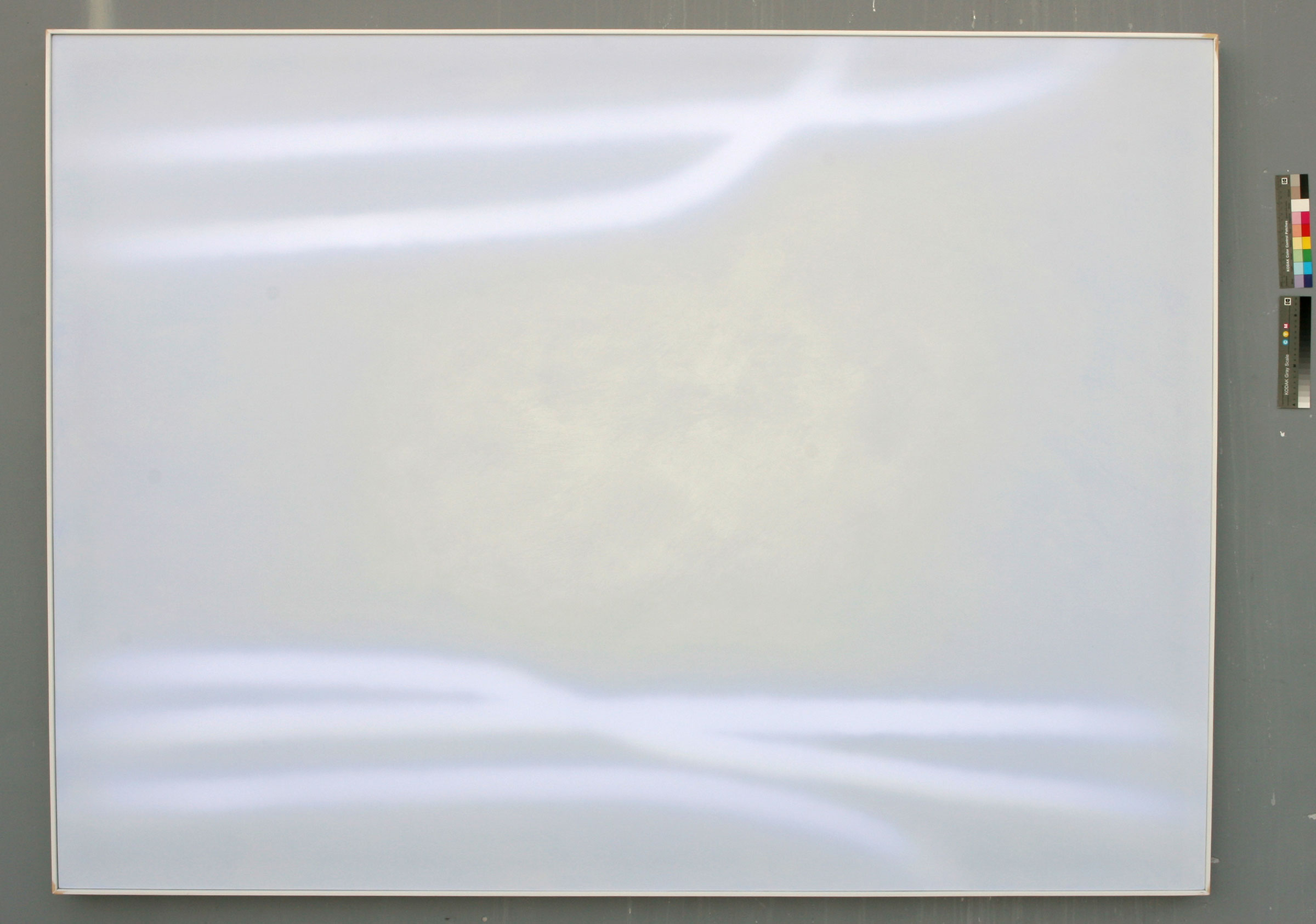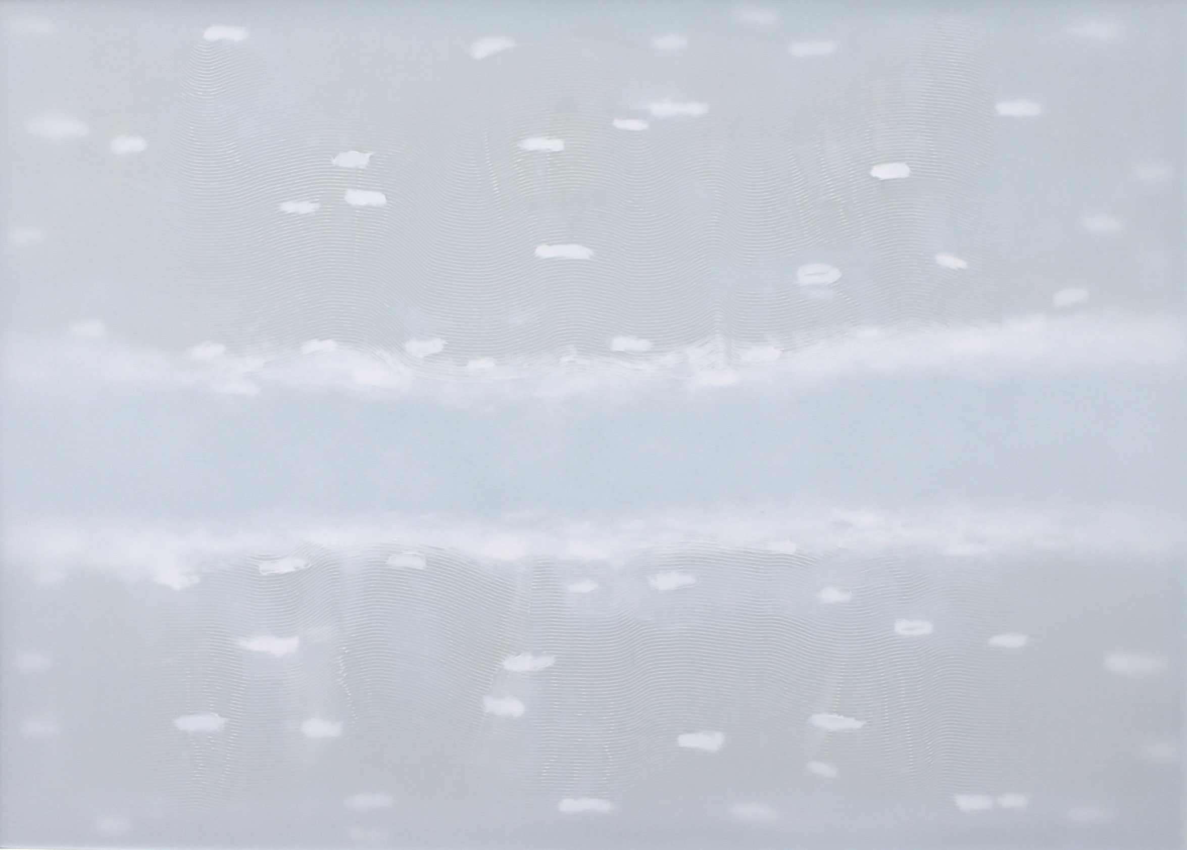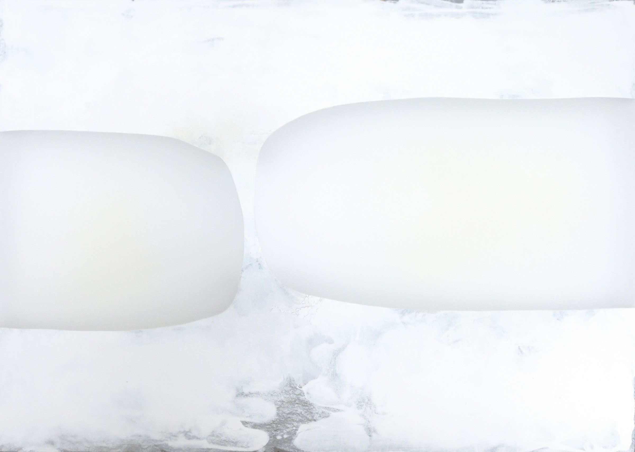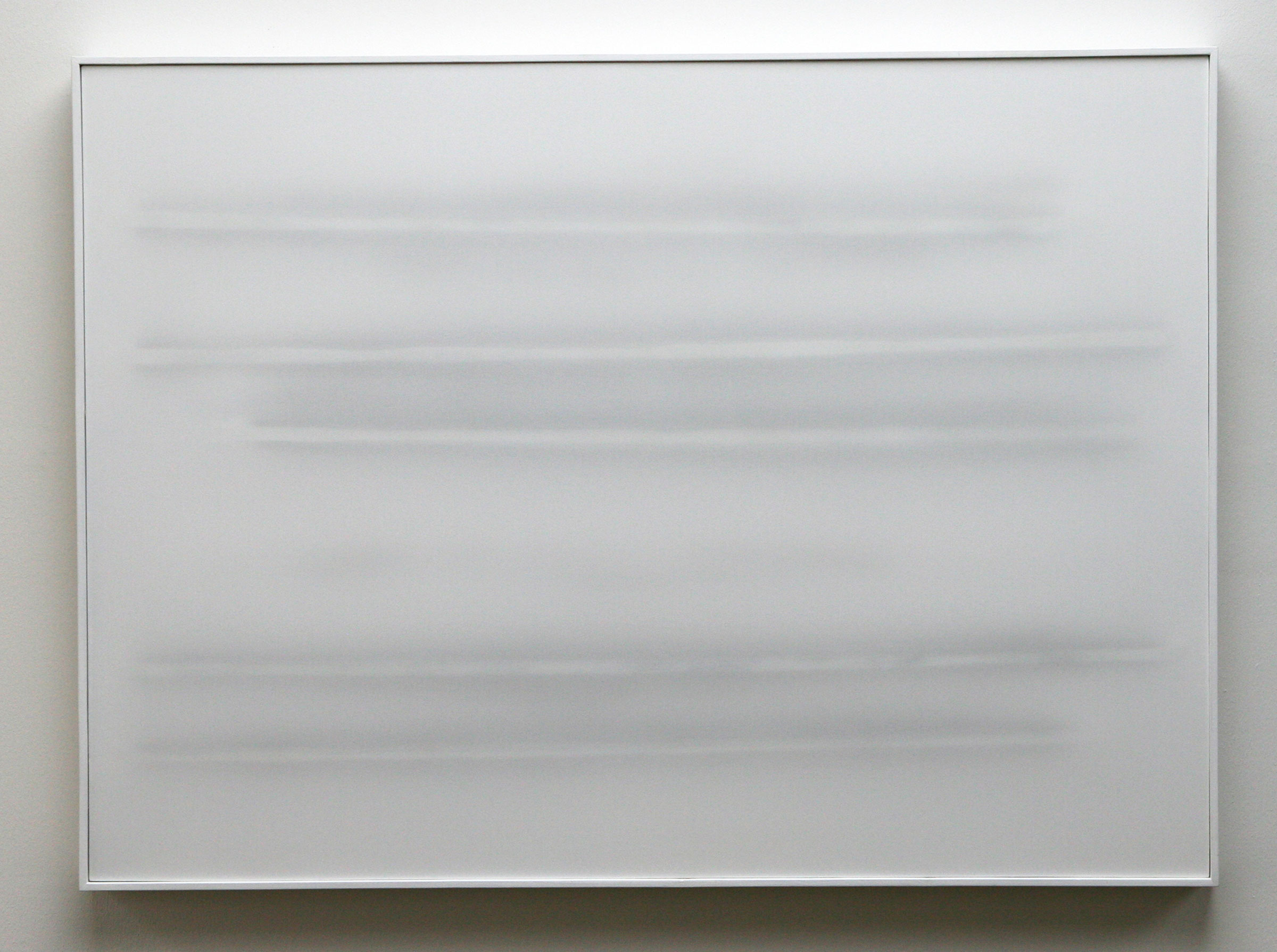 Nachdem die innere Komposition abgeschlossen ist, behandelt er die äußere Oberfläche mit Mineralöl sowie Grau-, Silber- und Weißtönen, um Transparenzen und Opazitäten exakt zu steuern. Durch diese einzigartige Methode schafft Udo Nöger leuchtende monochrome Gemälde, die Bewegung und Energie in äußerst minimalistischen Kompositionen bündeln – mit dem Ziel, das reinste mögliche Licht sichtbar zu machen.